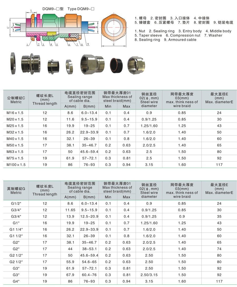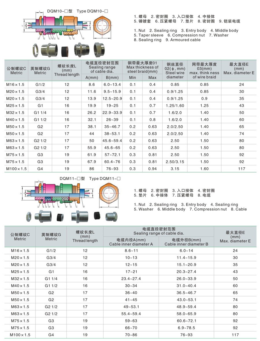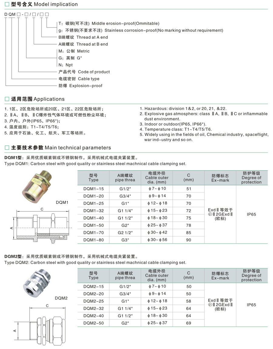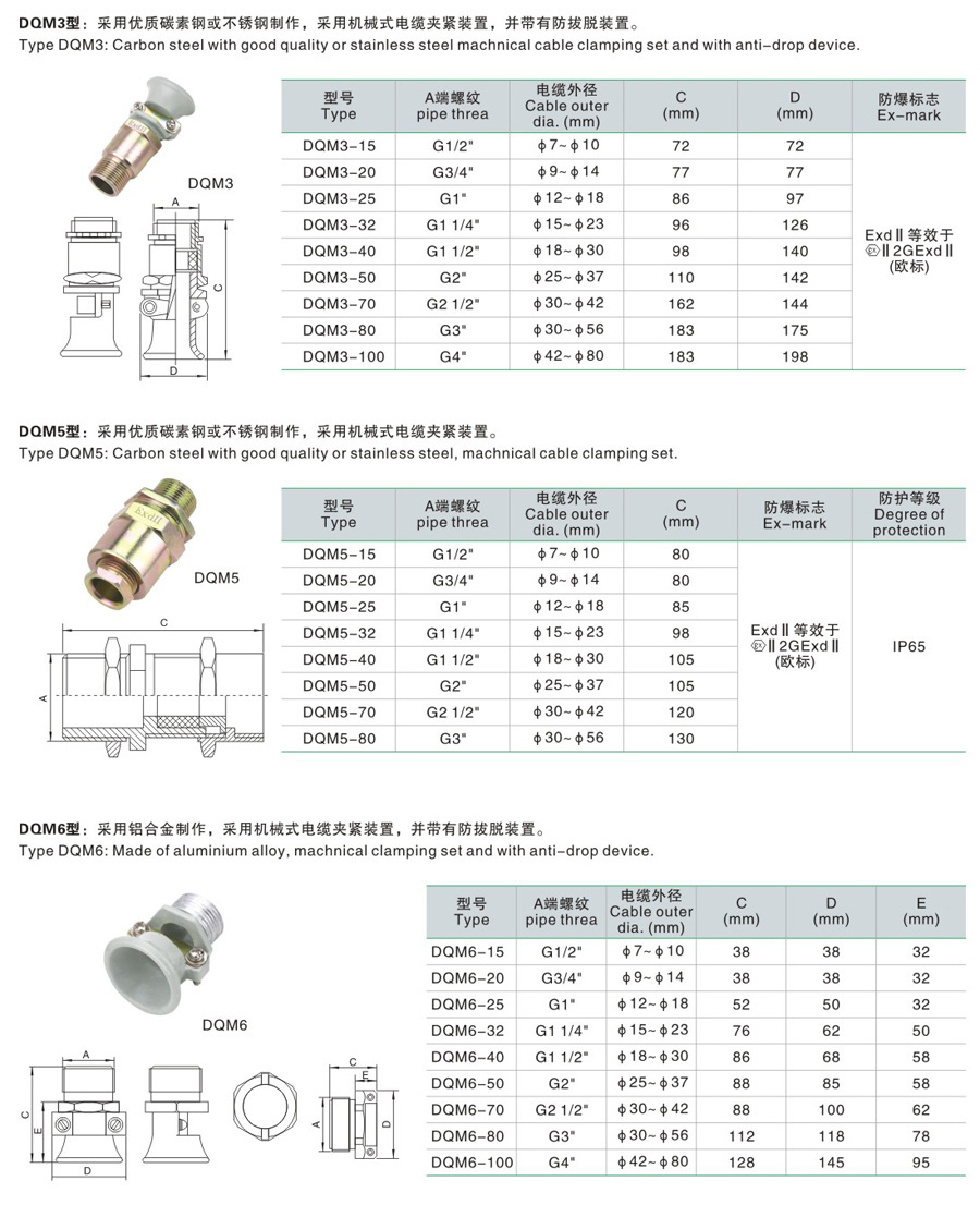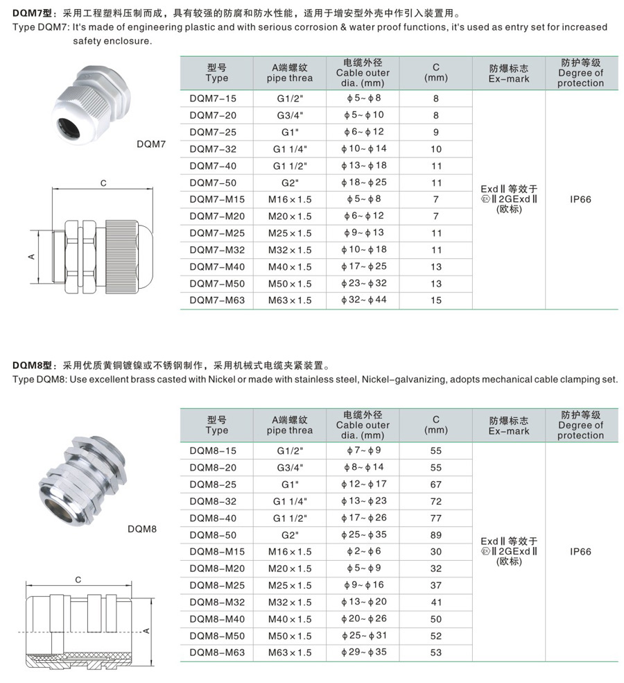 DQM□系列防爆电缆夹紧密封接头